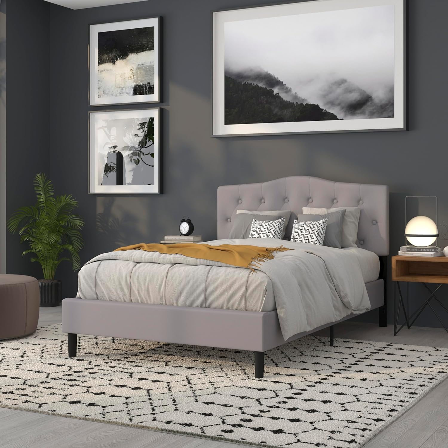 If you like reading or using your tablet or laptop in bed, you need a headboard to provide extra support. A headboard gives your room a very personal touch and allows you to show off your style. This gorgeous light gray full headboard features button tufting and a diamond stitch pattern design, fabric upholstery, and includes adjustable metal bed rail slots. The slim panel will make your room feel more spacious. Having just a headboard will provide you with floor space and makes it easy to make up the bed. Whether you're updating your master bedroom, guest room or furnishing your first apartment or home, this headboard will give a fresh, on-trend look to your space.