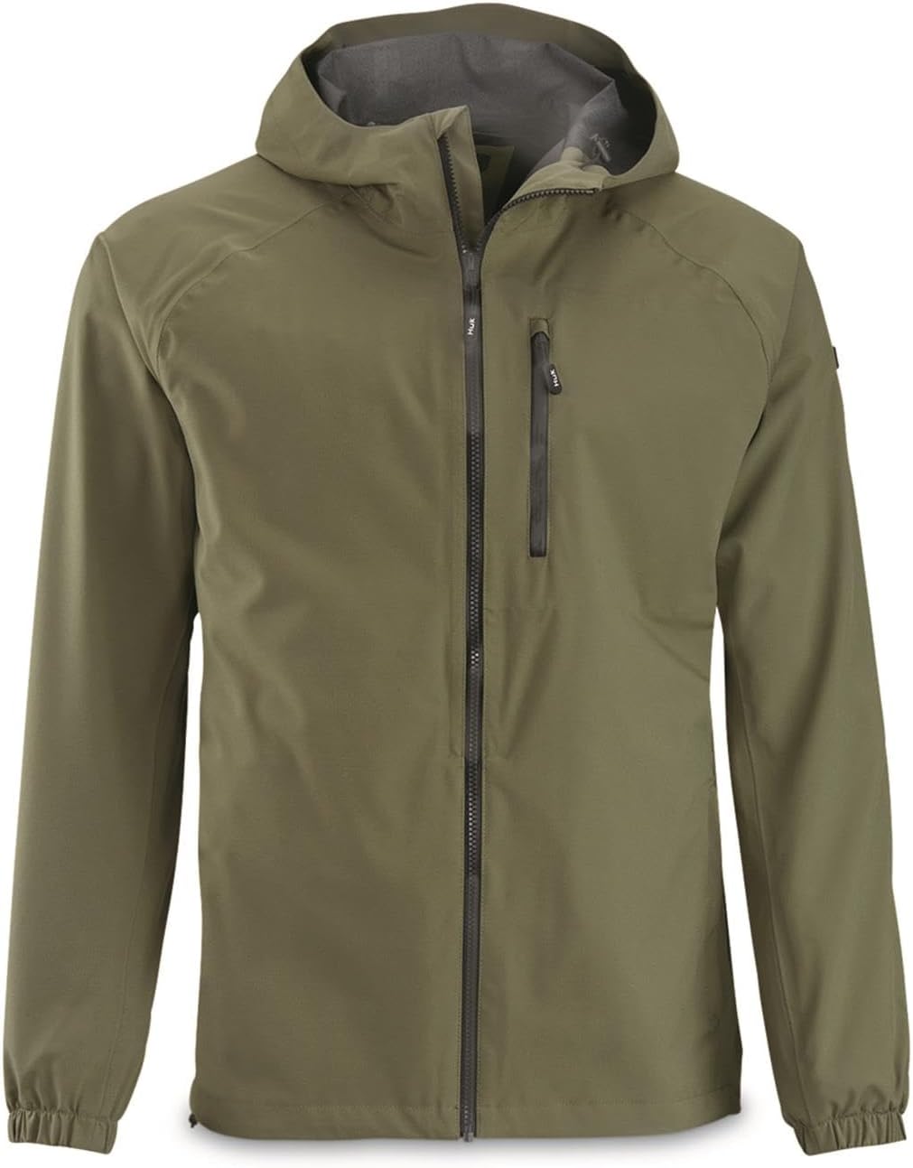 HUK ROVER JACKET: This 4-season lightweight jacket is designed with a built-in hood, waterproof body fabric, fully seam-sealed construction, adjustable bungee hem and hood, and built-in handwarmer pockets, ensuring you will not leave the landing without it