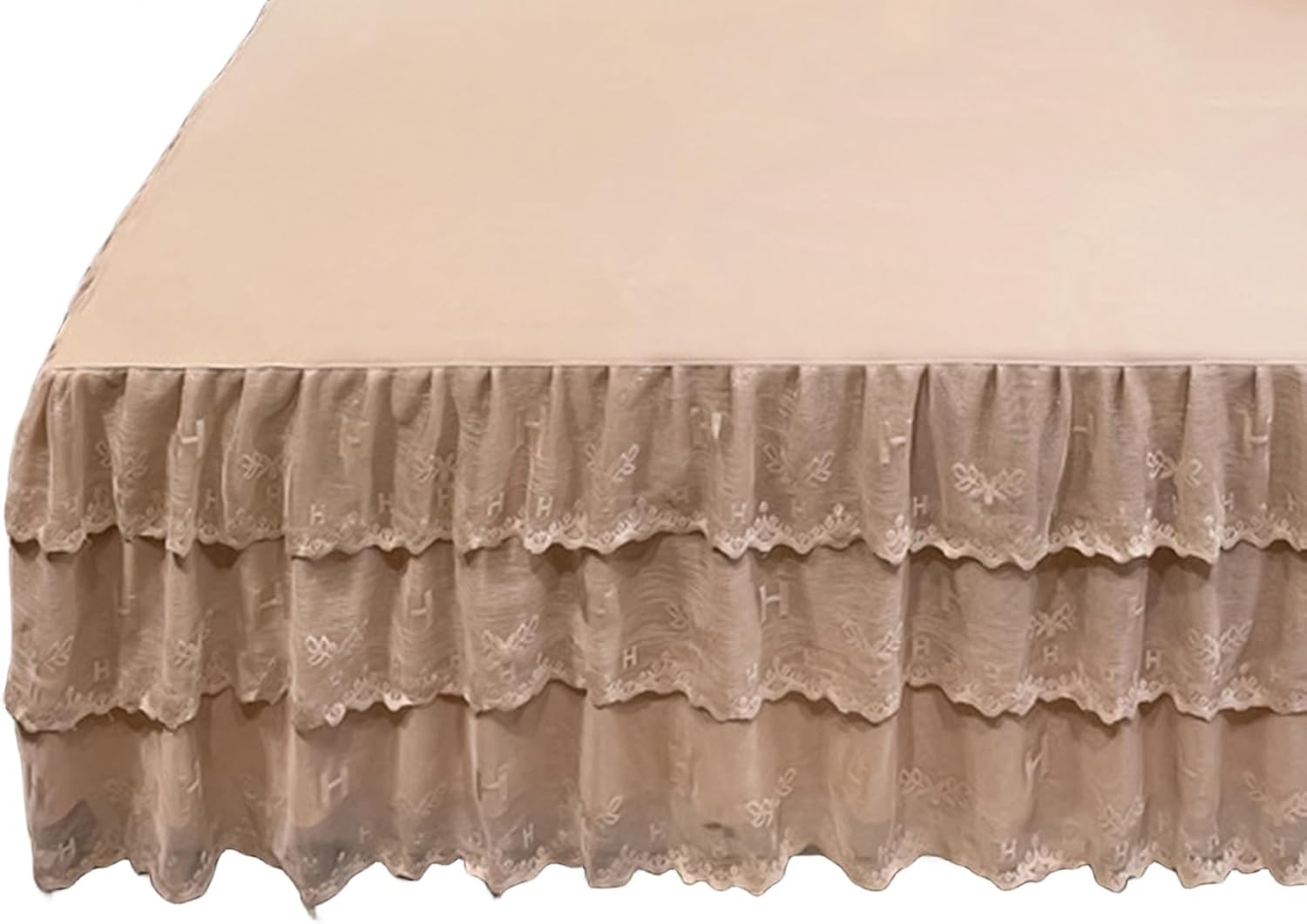 Two Sizes for you to choose:Queen and King;5 colors for you to choose;Material:Microfiber Polyester;Queen Size:Most suitable for Queen beds (80”L x 60”W), Drop: about 17.7";King Size:Most suitable for King beds (80”L x 77"W), Drop:About 17.7";Romantic ruffled bedskirts dust ruffle bedskirt with 2 lace layers,suitable for many styles Beds;decorate your bedding to complete its elegant look with this bed skirt and it's a good mattress protective cover,keep your bed dust-free and tidy.